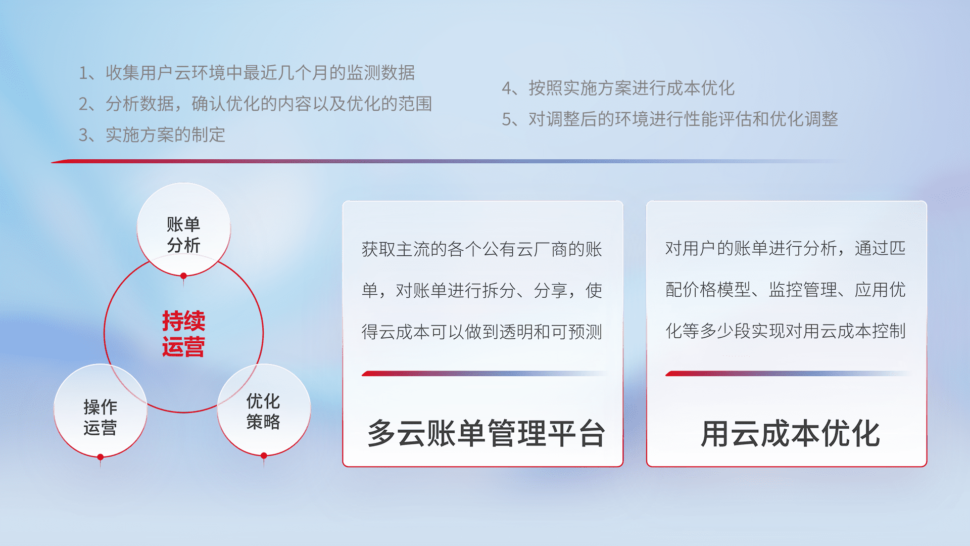 运用智能化工具分析云资源,,,提供日常费用可视化工具,,,自动账单拆分,,,成本优化云上费用,,降本增效。。
